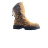 Stivaletti combat Juli Pascal Paris in pelle con stampa leopardata e dettagli whisky. Design deciso, suola robusta e comfort quotidiano. Per dare carattere a ogni look.