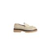 Mocassini in pelle scamosciata beige con finitura para martellato. Fodera morbida e calzata confortevole, ideali per l’uso quotidiano con un tocco elegante.