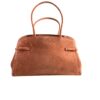 Borsa Orciani Aura M in morbido camoscio color terradisiena. Compatta ma capiente, con tracolla regolabile e chiusura pratica, perfetta per l’uso quotidiano con un tocco raffinato.
