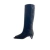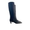 Stivale in camoscio con tacco 50 mm, silhouette slanciata e fodera confortevole. Suola resistente ideale per uso quotidiano e serate eleganti.